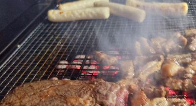 마당에 넓은 바베큐장이 있는데 숯바베큐그릴과 불멍화로도 즐길 수 있다.