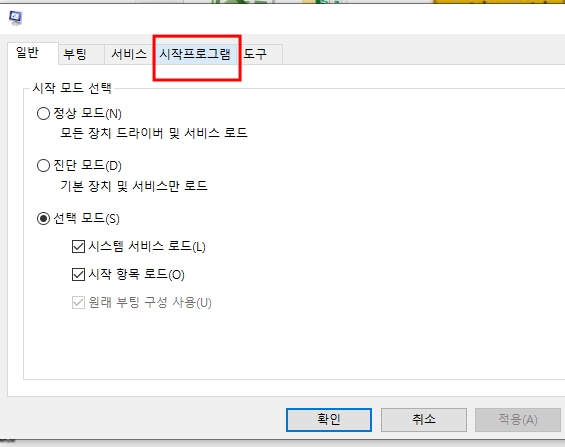 시작프로그램탭에서 프로그램이 기본적으로