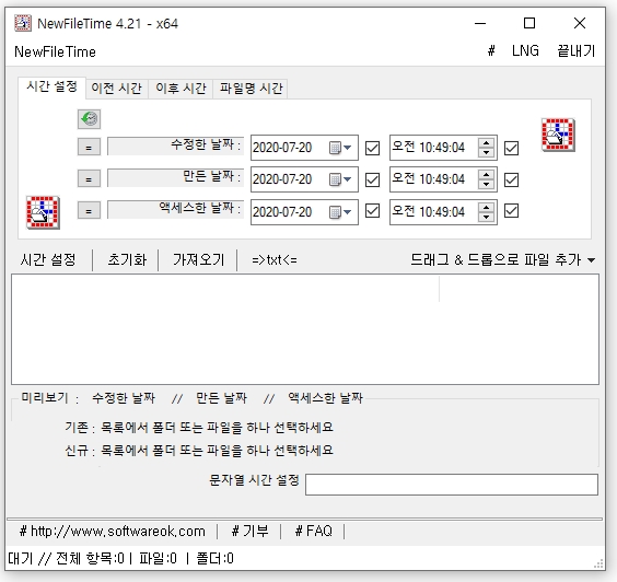 수정한날짜, 만든 날짜, 액세스 한 날짜를 세팅하고 시간 설정 탭을 누르면