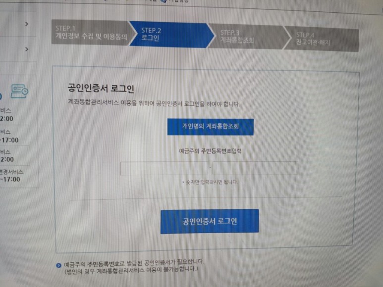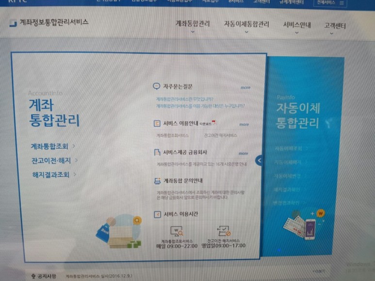 은행계좌 통합관리서비스는 휴면계좌 해지 및 잔액 이체 조회가 가능한 사이트이다.