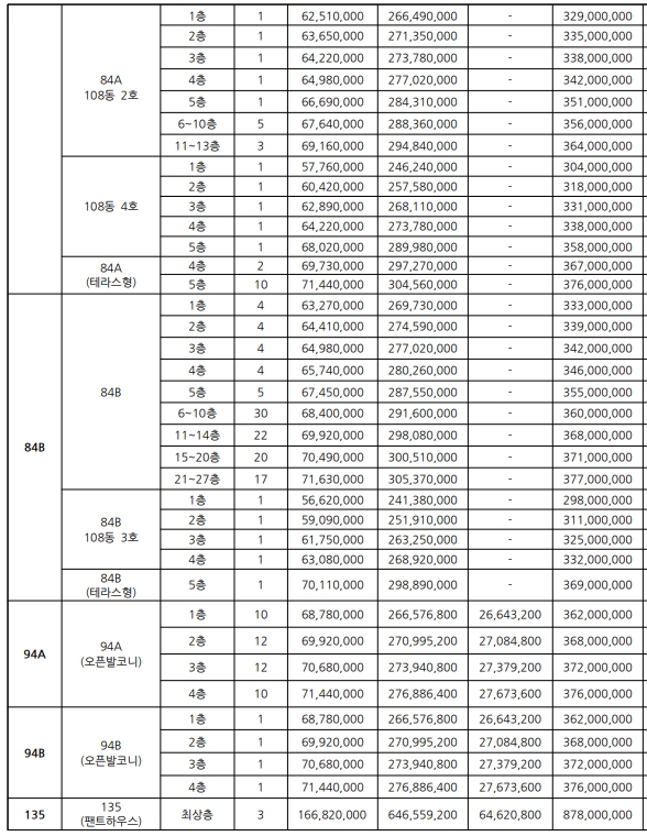 전용면적 74 ~ 135 제곱미터, 총 918가구 공급이다.
